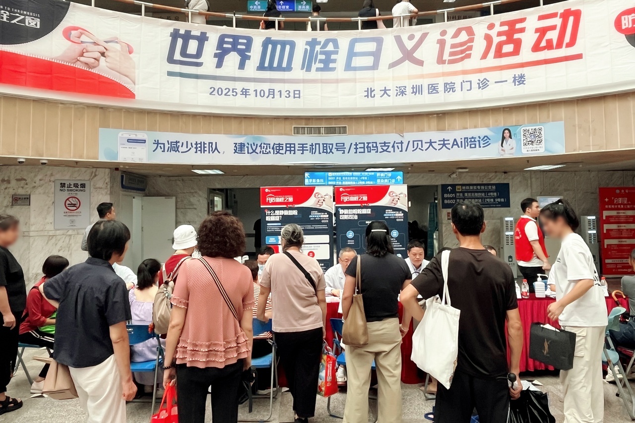 当天,北大深圳医院门诊大厅义诊现场,早早就排起了长队。不少市民带着既往检查报告,有序等待专家咨询。“脑卒中、心肌梗死、静脉血栓栓塞症是全球前三位的致死性心血管疾病。然而,它们却有着共同的诱因,那就是血栓。”专家团队介绍,静脉血栓栓塞症是由于血液在静脉内异常凝结,使血管完全或不完全阻塞从而引发的一系列病症,多发生于下肢,血栓脱落可引起肺动脉栓塞。由于其发病隐匿、无临床症状,容易漏诊、误诊,常被称为“沉默的杀手”。