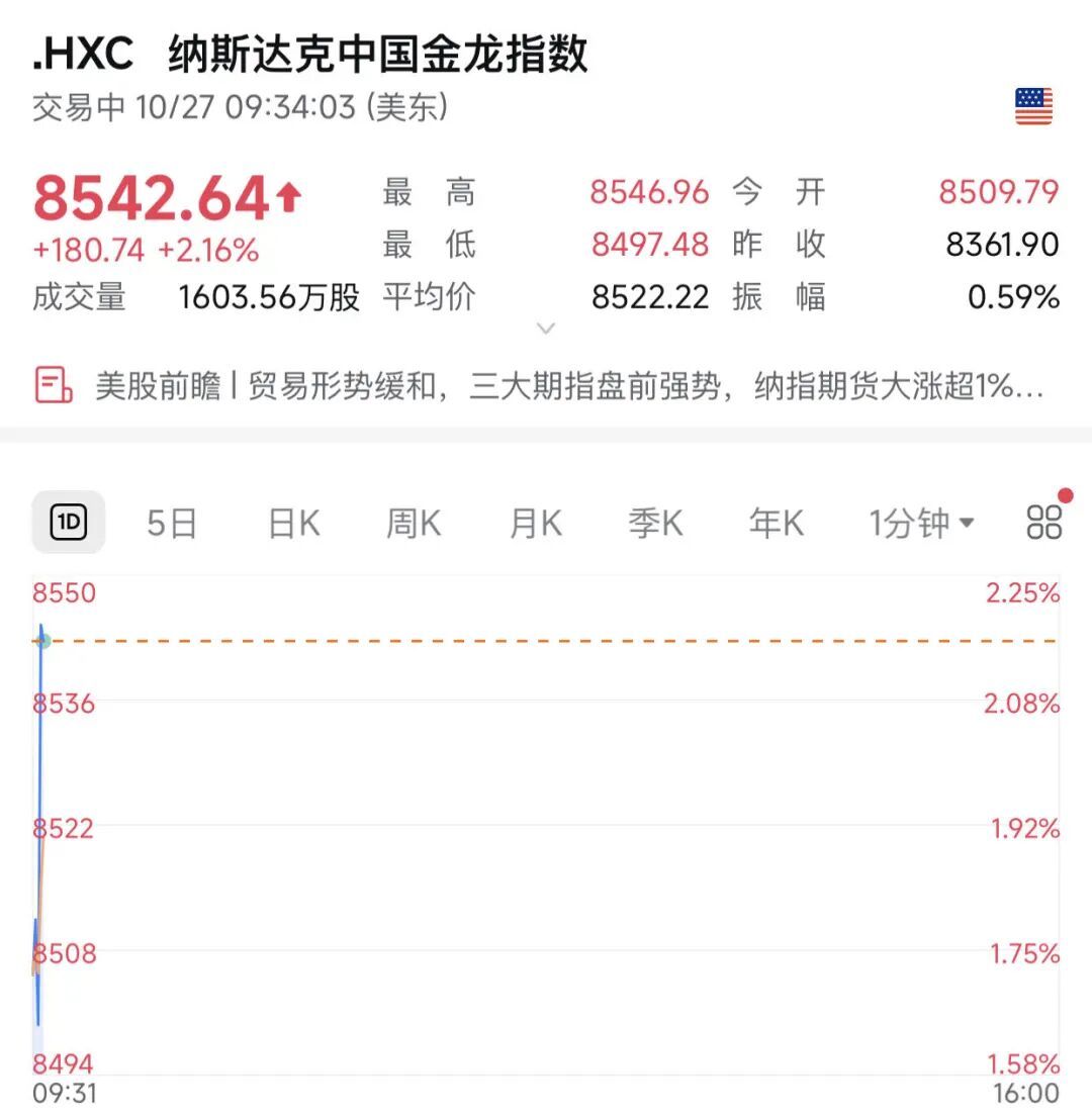 纳斯达克中国金龙指数早盘大幅拉升大牛证券,截至发稿,该指数涨超2%。